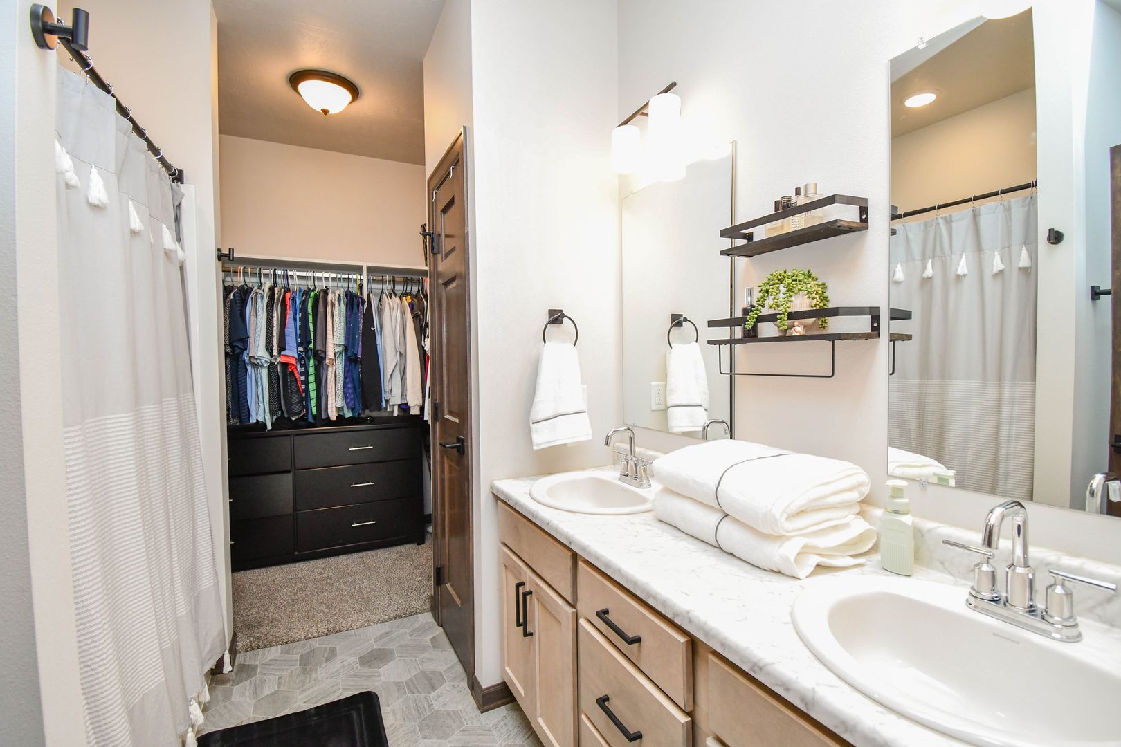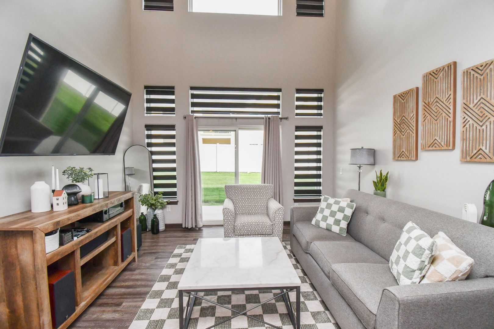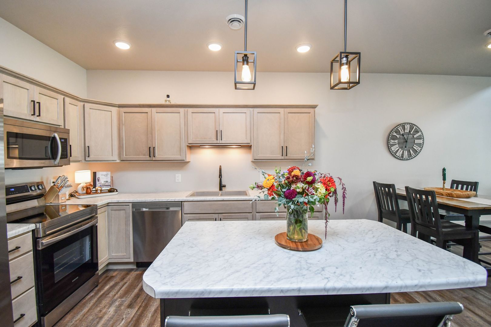 Enjoy easy living in this beautifully maintained home where snow removal and lawn care are included. The main level features an open living room filled with natural light, a modern kitchen with newer appliances, and an island with an eating bar. The master suite on the main level offers a walk-in bathroom and walk-in closet for added convenience. Upstairs, you’ll find an extra family room and two additional bedrooms, perfect for guests or flexible living space. A two-car garage completes this comfortable and convenient home.