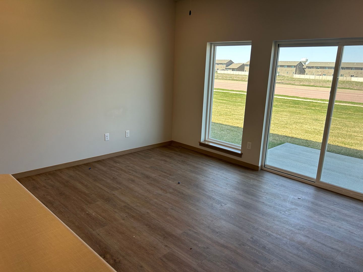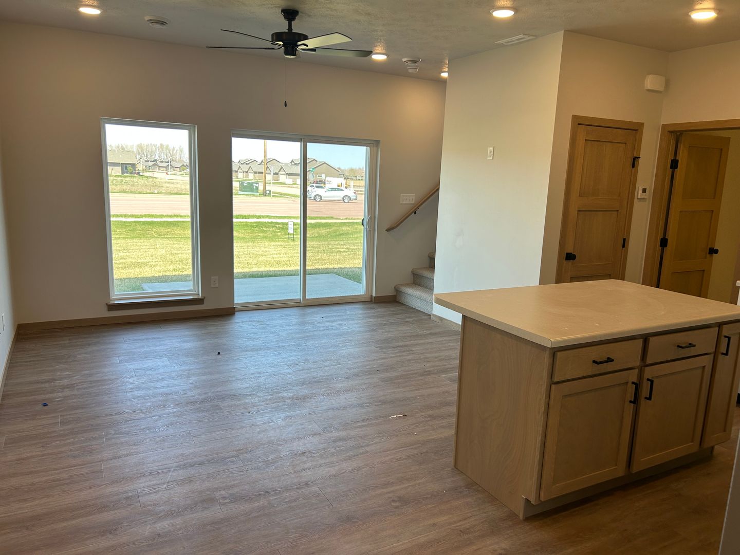 This charming 3-bedroom, 2.5-bath home in southeast Sioux Falls offers an open-concept kitchen with a spacious island, large pantry, and a convenient half bath just off the kitchen. The master suite features a walk-in closet and private bath, while a cozy family room upstairs provides extra living space. Sliding doors lead to a backyard perfect for outdoor relaxation or entertaining. With a prime location this home blends comfort and convenience effortlessly.