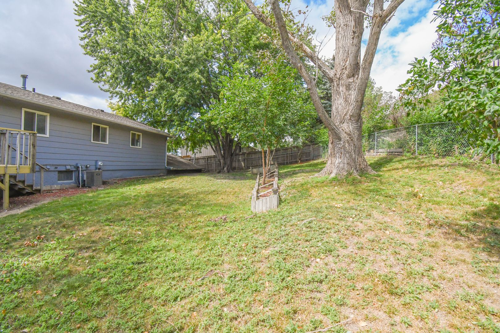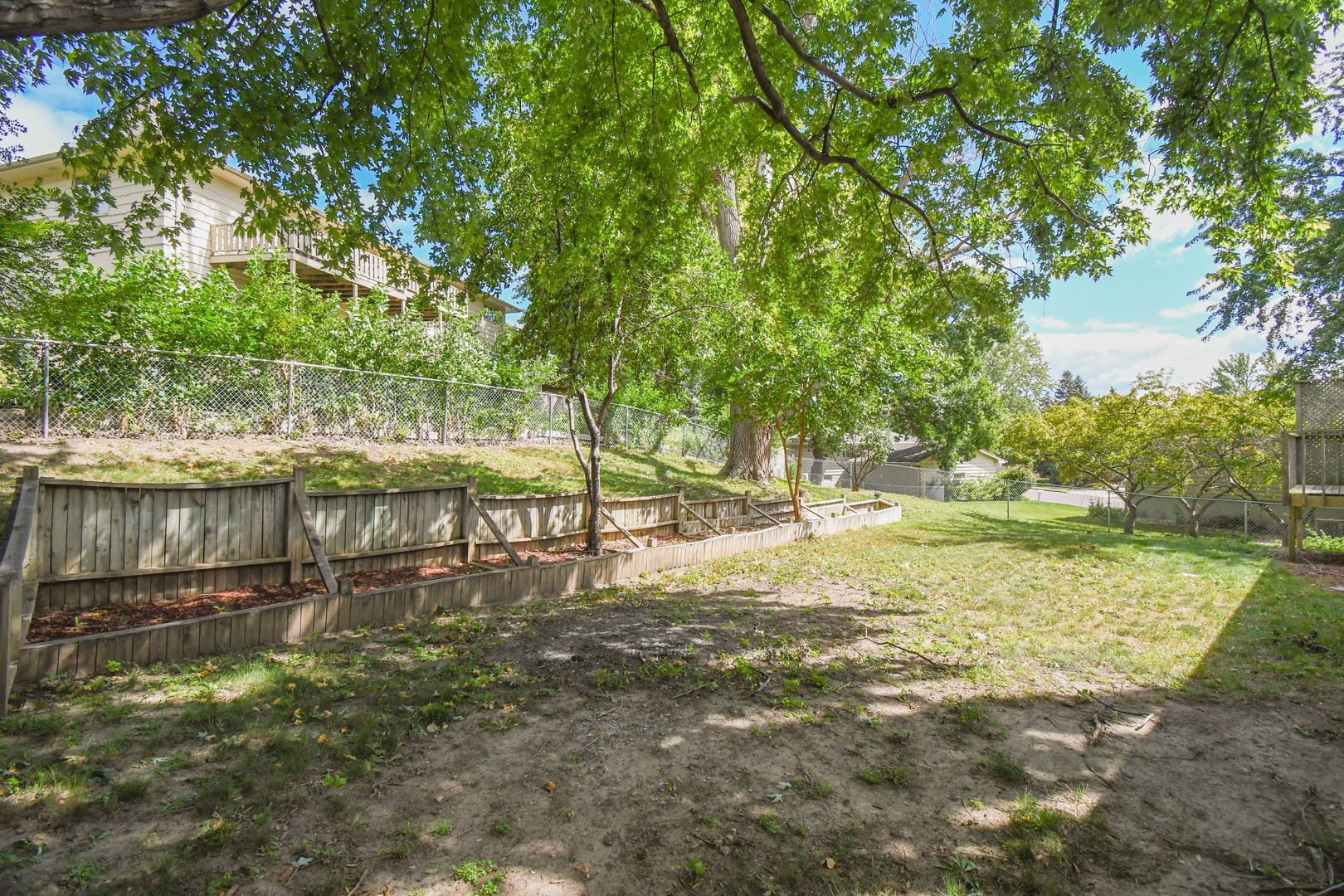 The main level features three bedrooms, a large front living room filled with natural light, and a dining area with a sliding door leading to a deck that overlooks the fully fenced backyard. The kitchen includes all appliances, oak cabinets, and a breakfast bar—perfect for home-cooked meals.