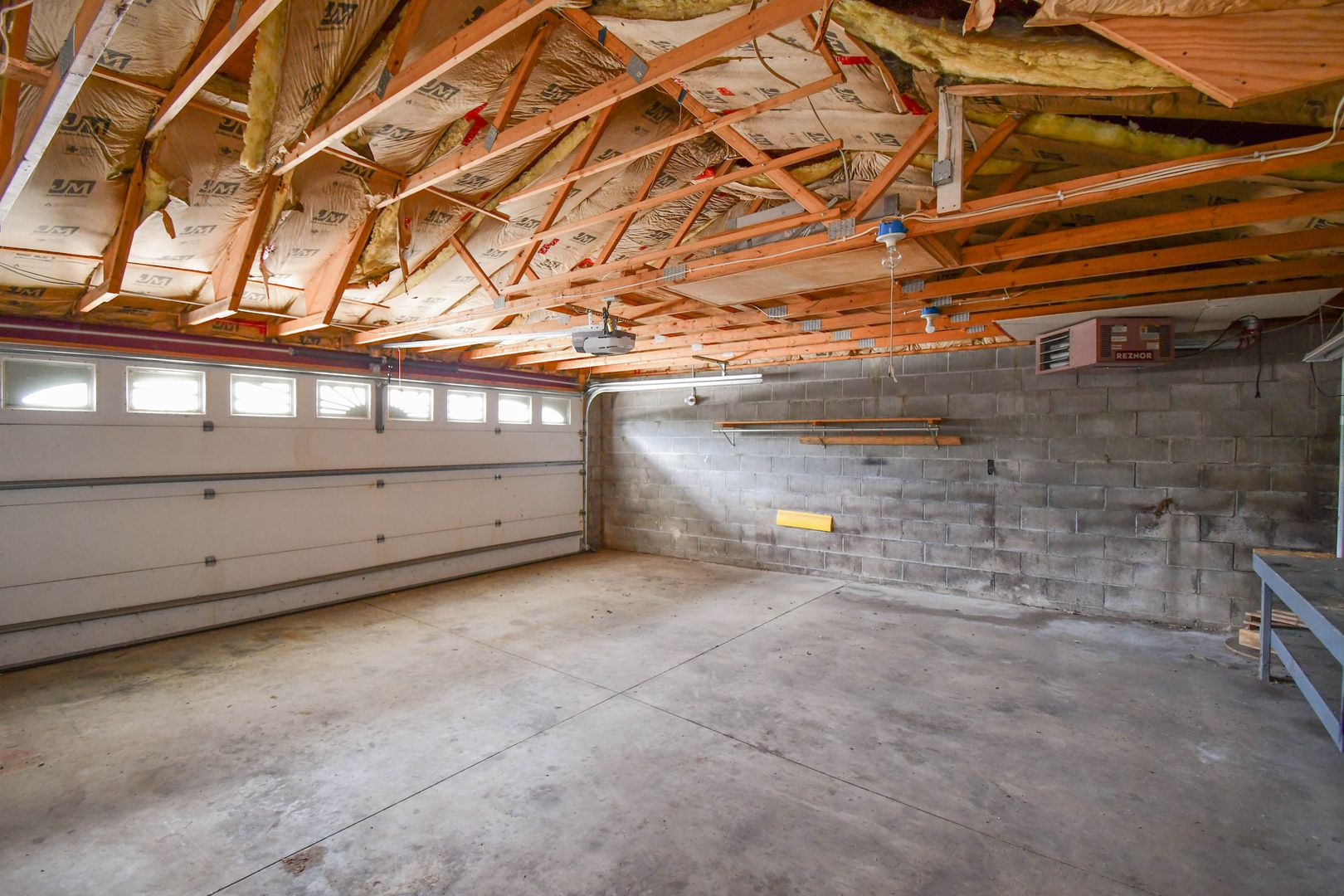 Downstairs, you'll find a cozy family room with garden-level windows and an additional office with a closet that can serve as a fourth bedroom. The home also features two bathrooms, updated flooring throughout, and an impressive four-stall garage offering plenty of storage or workspace.