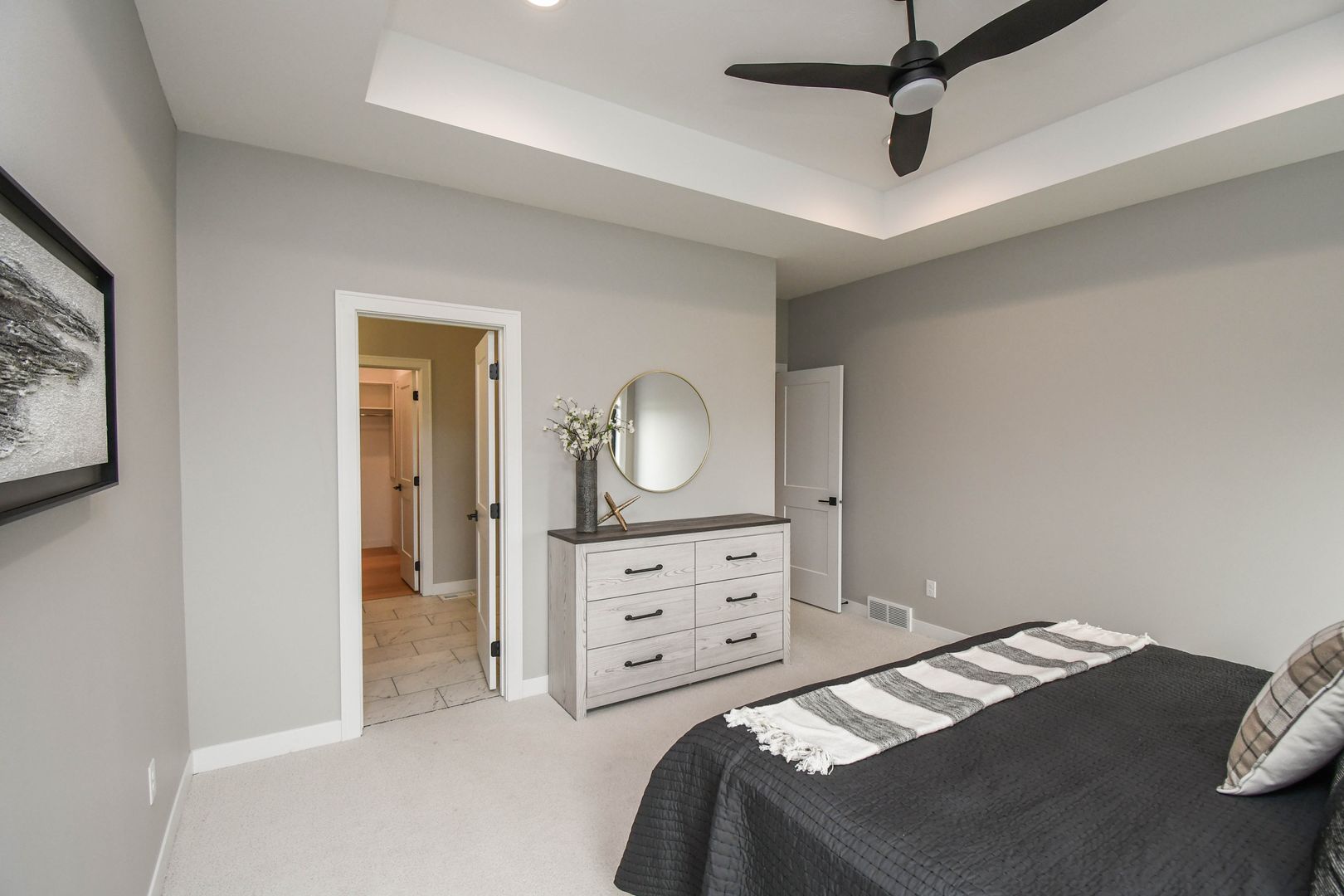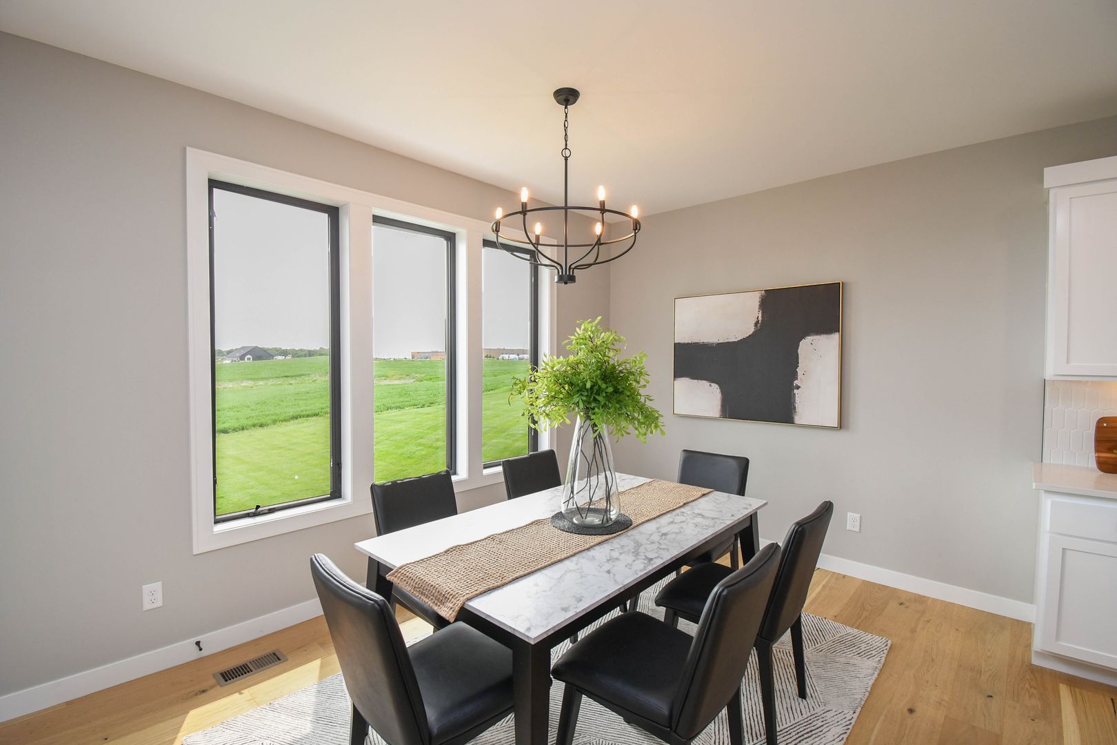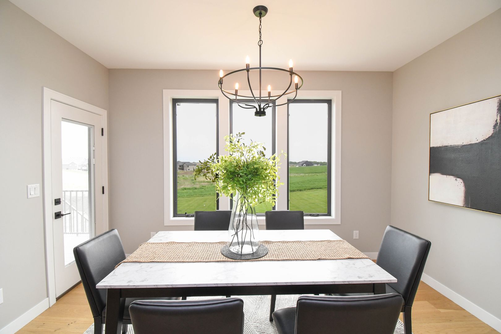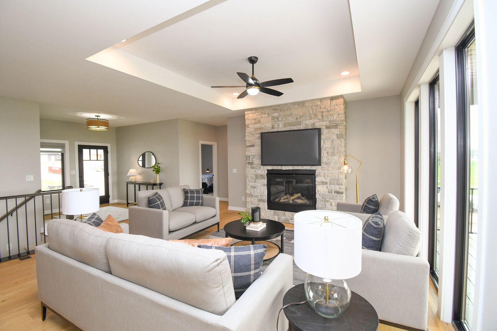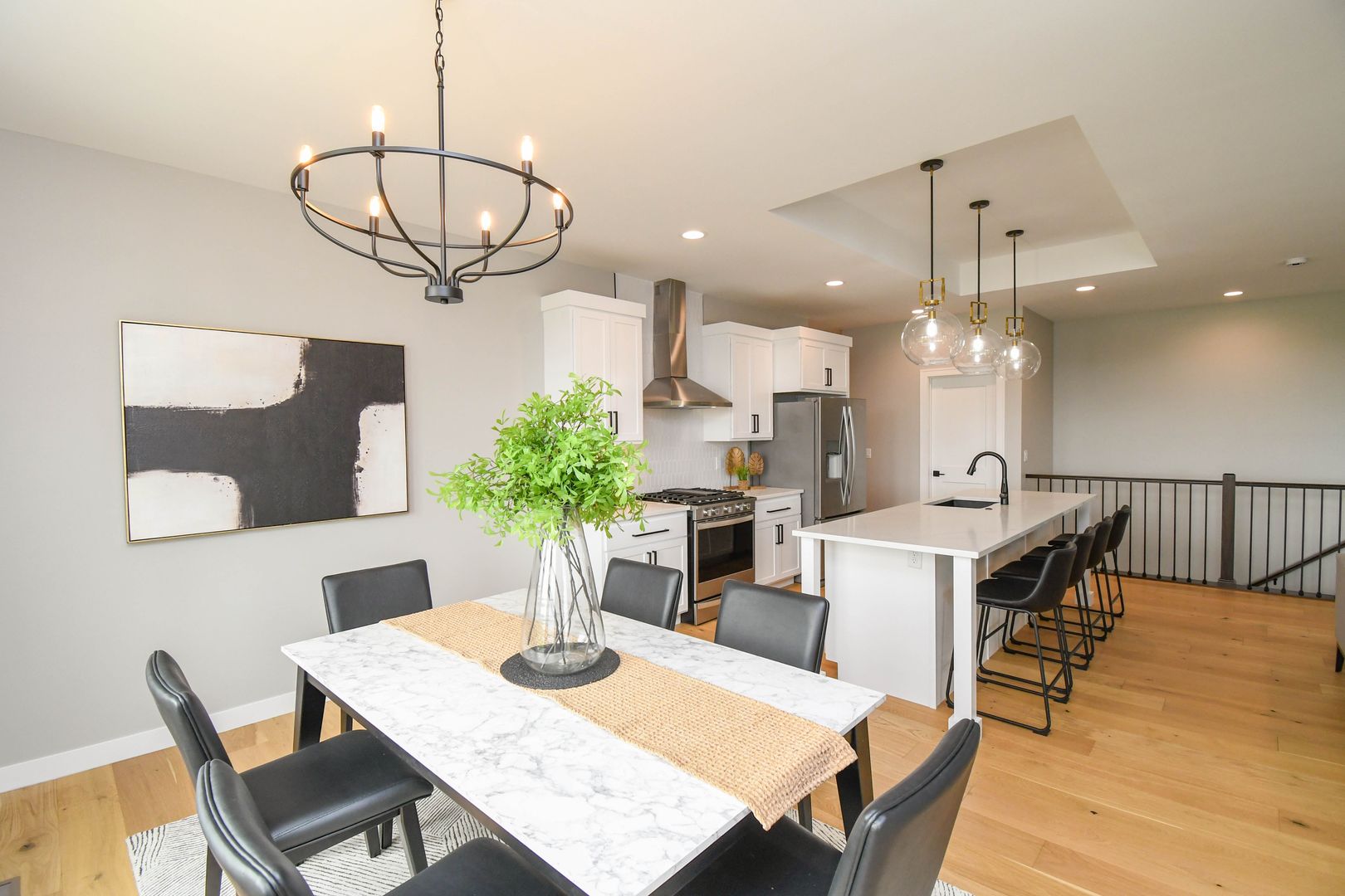 Spacious and stylish ranch walkout home featuring 5 bedrooms and an open-concept layout perfect for everyday living and entertaining. Enjoy warm wood floors, a bright living room with large windows, and a gas fireplace. The kitchen offers quartz countertops, stainless steel appliances, and a walk-in pantry, while the walkout lower level includes a wet bar and extra living space. A heated three-stall garage with floor drains adds year-round convenience, all on a private lot with no backyard neighbors.