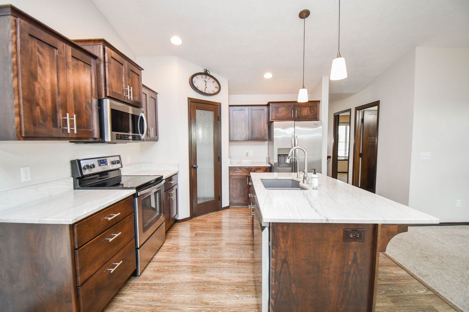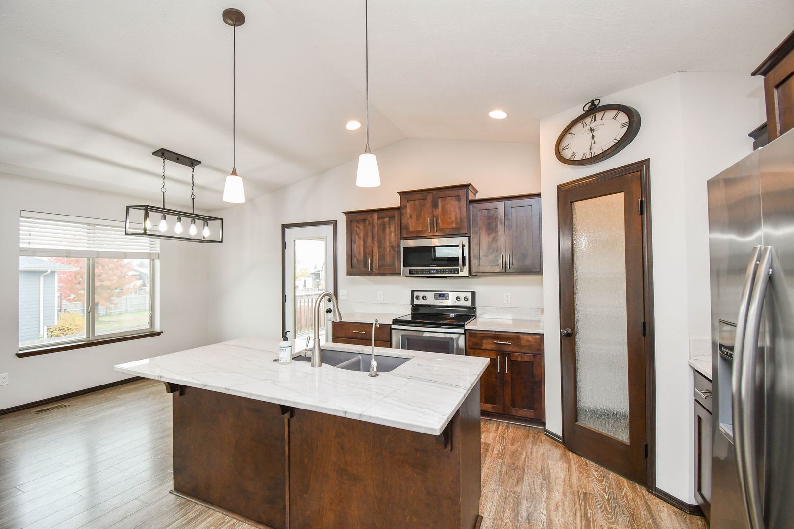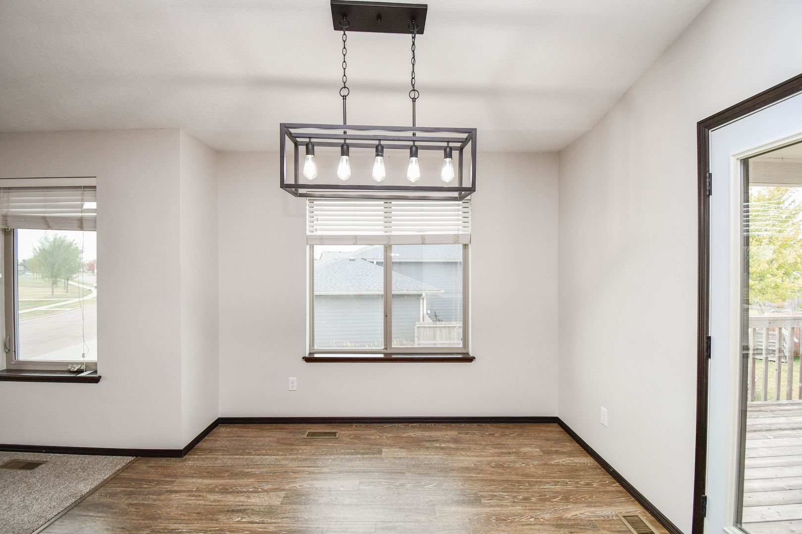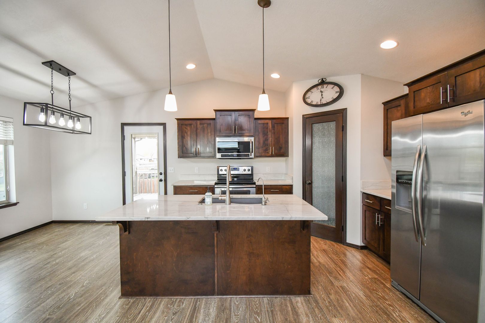Don’t miss this beautiful west side walk-out ranch, perfectly located on a corner lot just steps from R.F. Pettigrew Elementary School! The main level features a spacious kitchen with a large island, walk-in pantry, updated appliances, and a dining area that opens to a cozy porch. Enjoy three main-level bedrooms, including a master suite with a walk-in closet and private bath, plus the convenience of main-floor laundry. The finished walk-out basement boasts hardwood floors, a wet bar, an office nook, a fourth bedroom, and access to a private patio. With a 3-car garage and extra storage space, this home has everything you need in a prime location!
